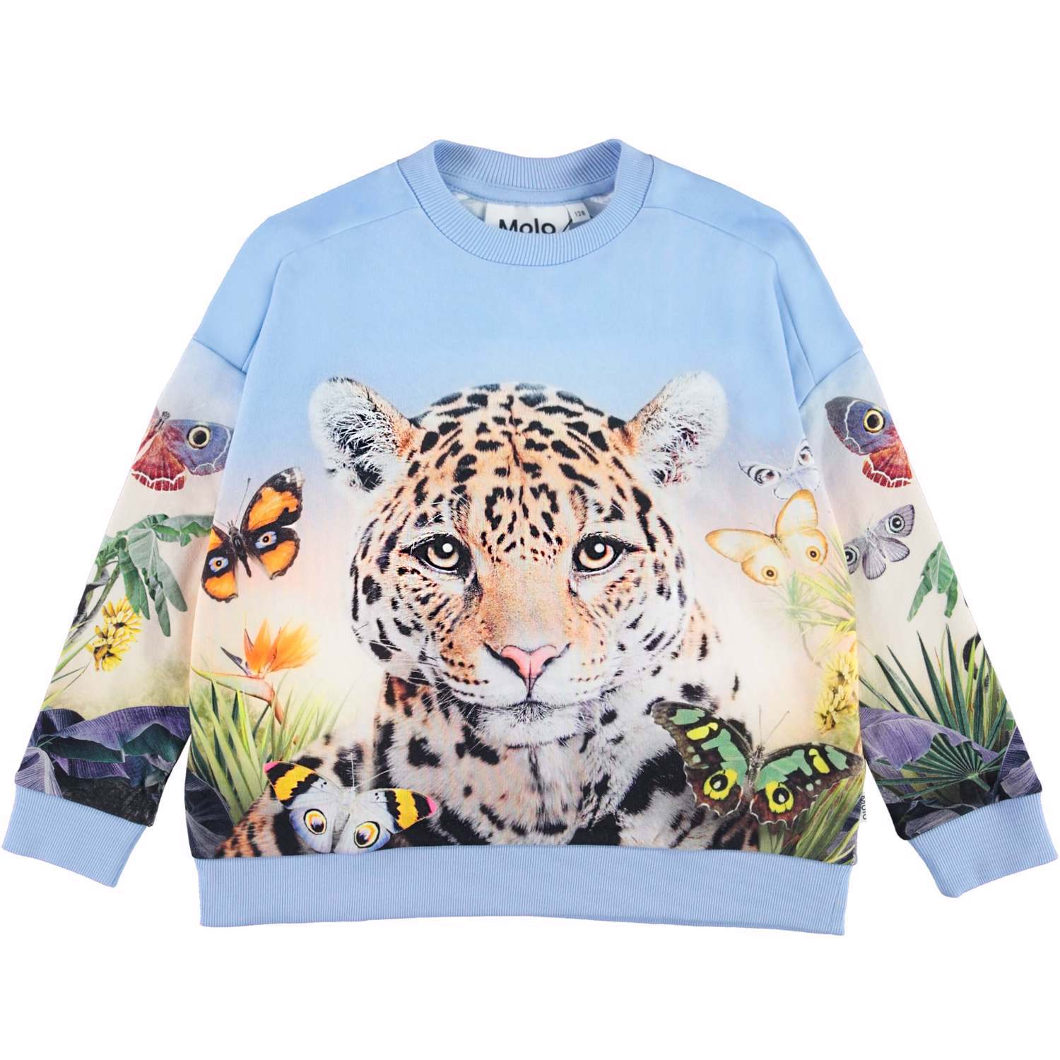 Mandy är en ljusblå sweatshirt med en leopard och massor av fjärilar i en oversized passform.
