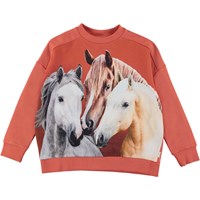 Mandy är en rostfärgad sweatshirt med tre hästar framtill. Tröjan har en oversized passform.