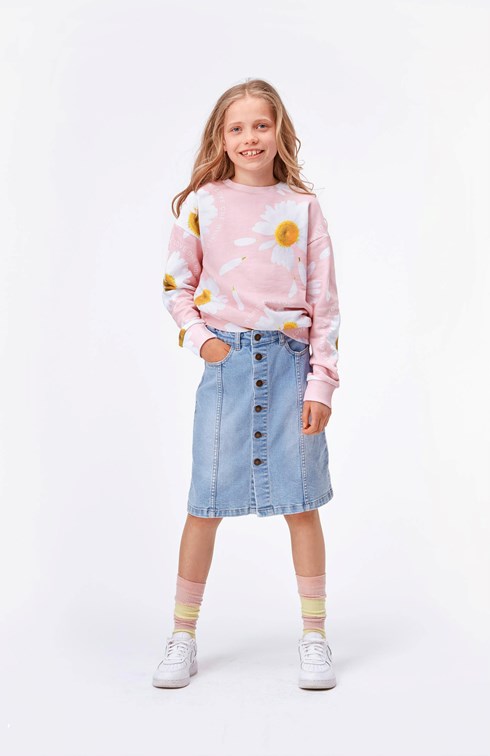Manon är en rosa tröja med tryck av stora prästkragar. Tröjan har en stor passform.