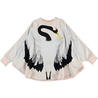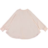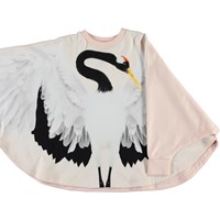 Marcella är en ljusrosa poncho med en trana framtill, som fäller ut sina vingar. Tröjan har ribbade muddar. Storlekarna motsvarar: S = 2-4 år M = 5-7 år och L = 8-12 år.