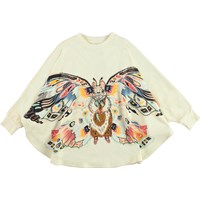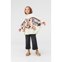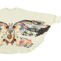 Marcella är en beige poncho med en ekorre som har vingar. Storlekarna motsvarar: S = 2-4 år M = 5-7 år och L = 8-12 år.