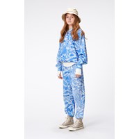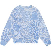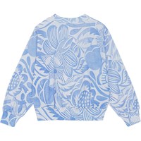 Ljusblå sweatshirt med blå konstnärliga blommor i ekologisk bomull. Tröjan har rund hals, ribbkant vid hals, ärmar och nertill samt en oversized passform.