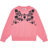 Gråmelange sweatshirt i ekologisk bomull med rund hals och ribbade kanter vid halsen, nederkanten och ärmarna. Den har en oversize passform med multifärgade runda paljetter av Yin och Yang-symboler och smileys.