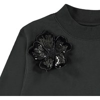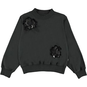 Marge är en väldigt mörk grå sweatshirt med en paljettblomma framtill. Tröjan har ribbad kant vid hals, ärmslut och nertill. Kombinera tröjan med de matchande byxorna.