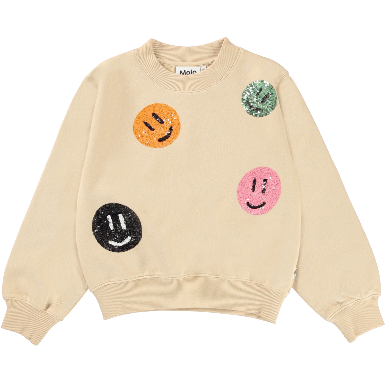 Marge är en ljusgul sweatshirt med paljettsmileys. Tröjan har ribbkant vid hals, nertill och vid ärmslut. Kombinera tröjan med matchande byxor.
