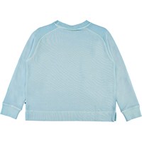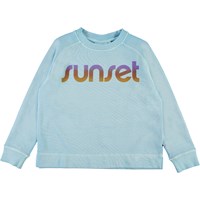 Margit är en ljusblå sweatshirt med texten 'Sunset' framtill, som differentierar i färgen. Sweatshirten har raglan ärmar, samt ribbkant vid hals, nederkant och ärmslut.