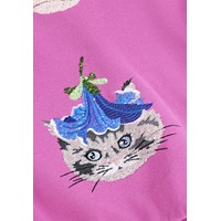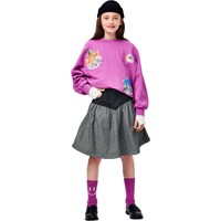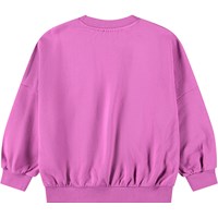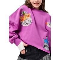 Lila sweatshirt i ekologisk bomull med rund hals och ribbade kanter vid ärmar, hals och nederkant. Sweatshirten har en oversized, avslappnad passform med paljettbroderier av djur med blomsterhattar.