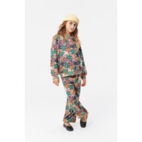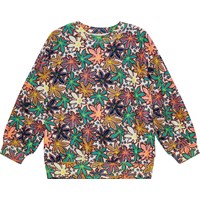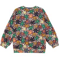 En off-white sweatshirt i mjuk bomullsvelour. Sweatshirten har en rund hals med ribbade kanter vid ärmar, hals och nederkant. Med en lös passform är tröjan enkel att ta på och bekväm att ha på. Sweatshirten har ett vackert flerfärgad lönnlövsprint som smälter samman till ett stort mönster. Kombinera sweatshirten med matchande byxor för att skapa ett komplett och bekvämt velourset.