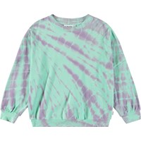 Lila och ljusgrön tie-dye tröja i mjuk ekologisk bomull med ribbade kanter vid halsen, ärmar och nederkant, samt en lös passform. Kombinera med matchande shorts för en komplett uppsättning.Observera att all vår tie-dye är handgjord, vilket skapar ett unikt mönster som varierar från plagg till plagg.