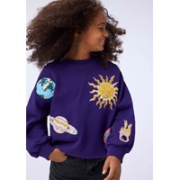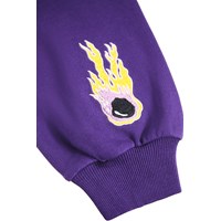 Lila sweatshirt i ekologisk bomull med en brodyr av rymden. Sweatshirten har en rund hals med ribbade kanter runt ärmarna, halsen och midjan, samt en lös passform.