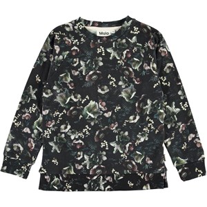 Marina är en mörk tröja med blommönstret 'Moonlight Garden'. Blusen har ribbade kanter samt en liten slita på vardera sida.