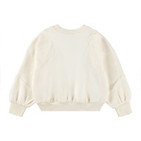 Kräm-färgad sweatshirt tillverkad av ekologisk bomull med mjuka paneler på axlarna och ärmkanterna. Sweatshirten har en normal passform och ribbade kanter.