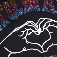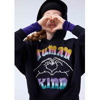 Svart hoodie i ekologisk bomull. Hoodien har ett mångfärgat motiv med paljetter och texten ''Humankind'', samt händer som formar ett hjärta. Hoodien har en lös passform och ribbade kanter.