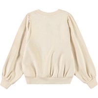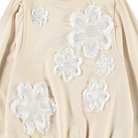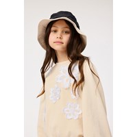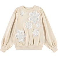 Beige sweatshirt i mjuk ekologisk bomull med ribbade kanter vid halsen, ärmar och nederkant. Tröjan har en normal passform med vitt blomsterbroderi på framsidan.