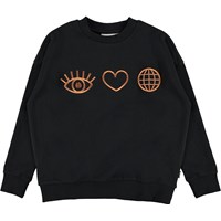 Maxi är en svart tröja med broderade bronsfärgade bokstäver. Tröjan har en stor passform.