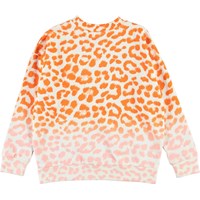 Maxi är en sweatshirt med orange leopardmönster som fader ut i rosa nertill. Sweatshirten har ribbad kant vid hals, ärmslut och nertill.