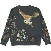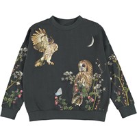 Maxi är en svart sweatshirt med ugglor och bärrankor både fram, bak och på ärmarna. Kombinera tröjan med de matchande byxorna.