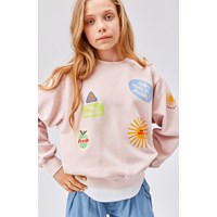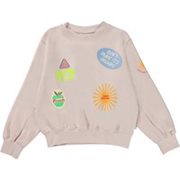 Maxime är en rosa sweatshirt i 100% ekologisk bomull. Maxime har fruktklistermärken här och där, både fram och bak.