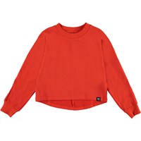 Opal är en korall rød sweatshirt med en vid och lös passform. Sweatshirten har detaljer med text på baksidan. Opal är en del av Molo's nya sportskollektion, som bidrar till att knyta mode och sport närmare varandra. Kombinera Opal med Molo's matchande sweatpants eller shorts för ett komplett och coolt look. Molo’s sportkollektion är tillverkad med en unik högpresterande teknologi som heter HeiQ Smart Temp, som stöder kroppens naturliga avkylning. • Kylfunktionen aktiveras när du är varm och svettig • Kylfunktionen inaktiveras när kroppen är avkyld • HeiQ Smart Temp garanterar optimal komfort och prestanda • Testad oberoende som säkert för huden •