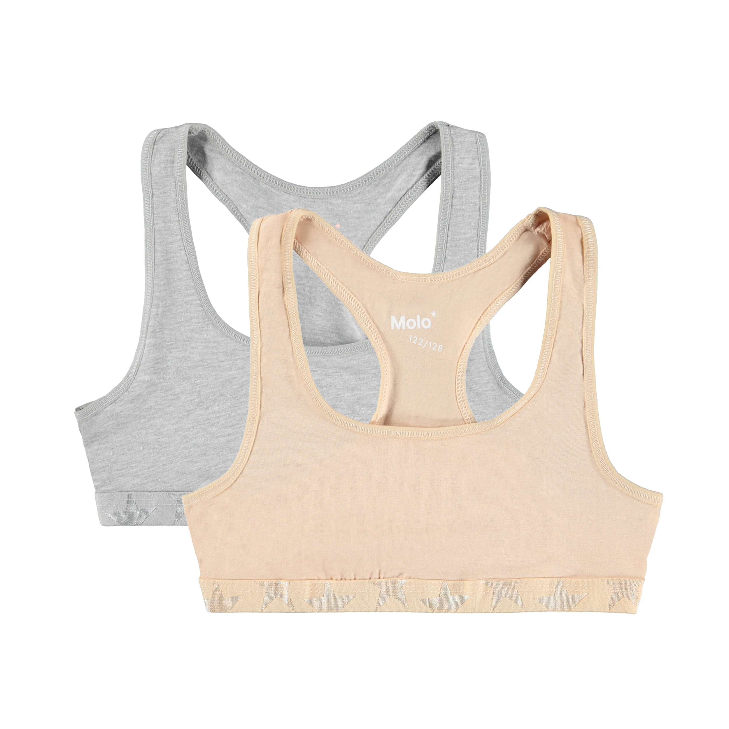 Sportig topp med brottarrygg och gummiband nertill med stjärnor, som säkrar att toppen sitter bra.Här är Jade i ett 2-pack med en rosa och en grå topp. De kommer i en liten tygpåse.