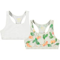 2-pack toppar i mjuk ekologisk bomull med racerback och bred elastisk kant med stjärnor, vilket ger en bra passform och gör dem sköna att ha på. En topp är vit, medan den andra har ett mönster av orange körsbär. Kombinera dem med matchande underkläder för en komplett uppsättning.