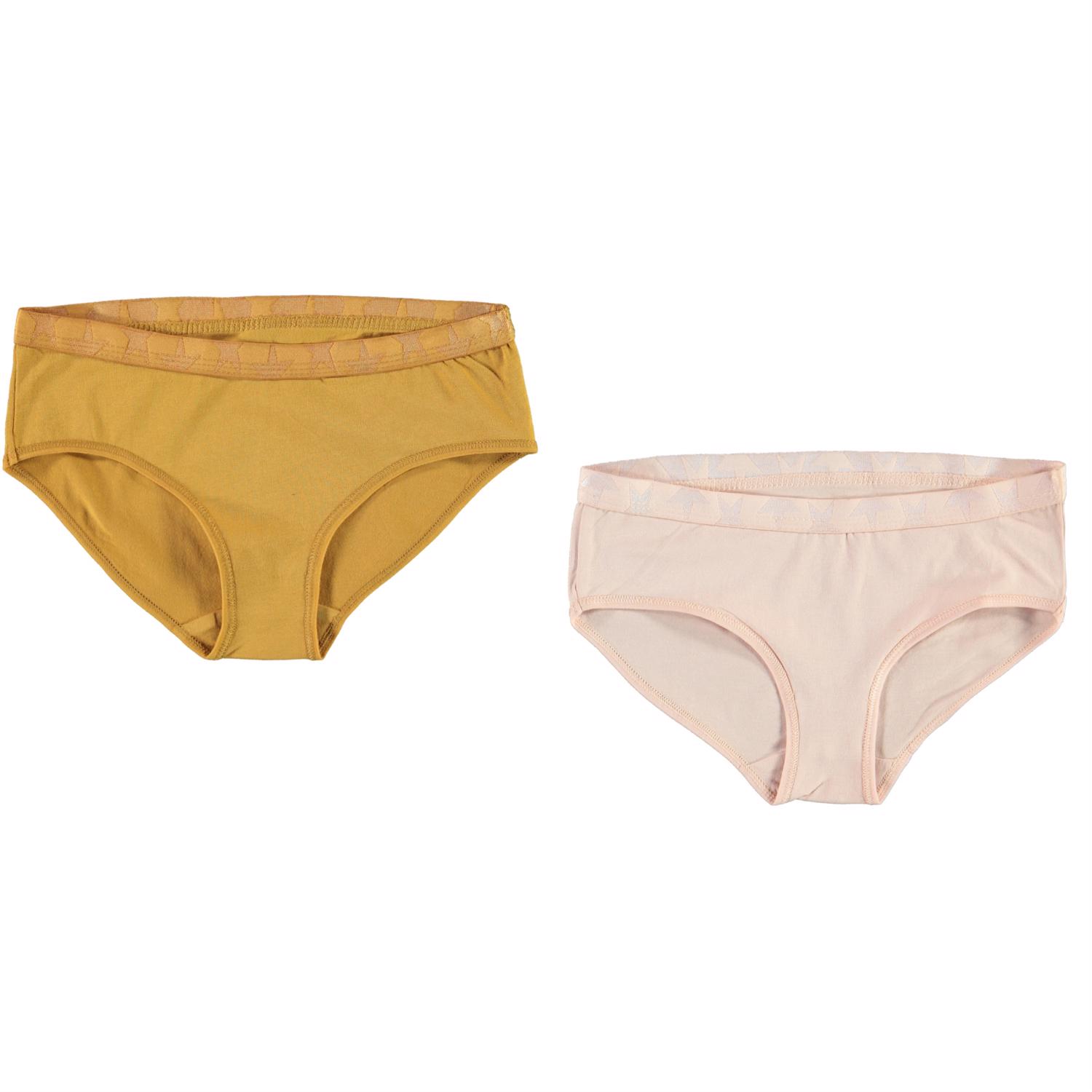 Underbyxor med en elastisk kant med stjärnor på. Här är Jana i 2-pack med en rosa och gul variant. Underkläderna kommer i en liten påse.