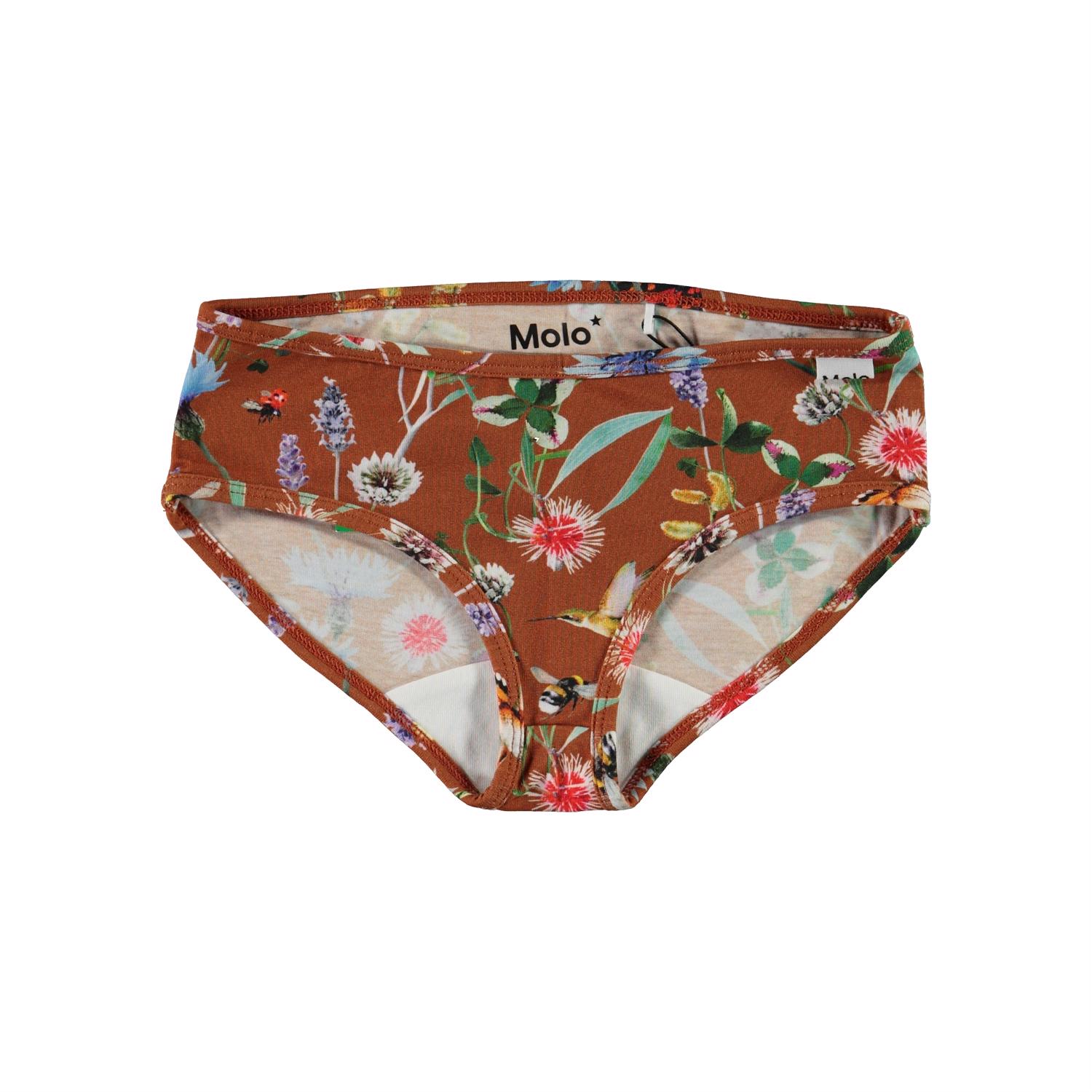 Bruna trosor med ett tryck av vilda blommor och insekter.