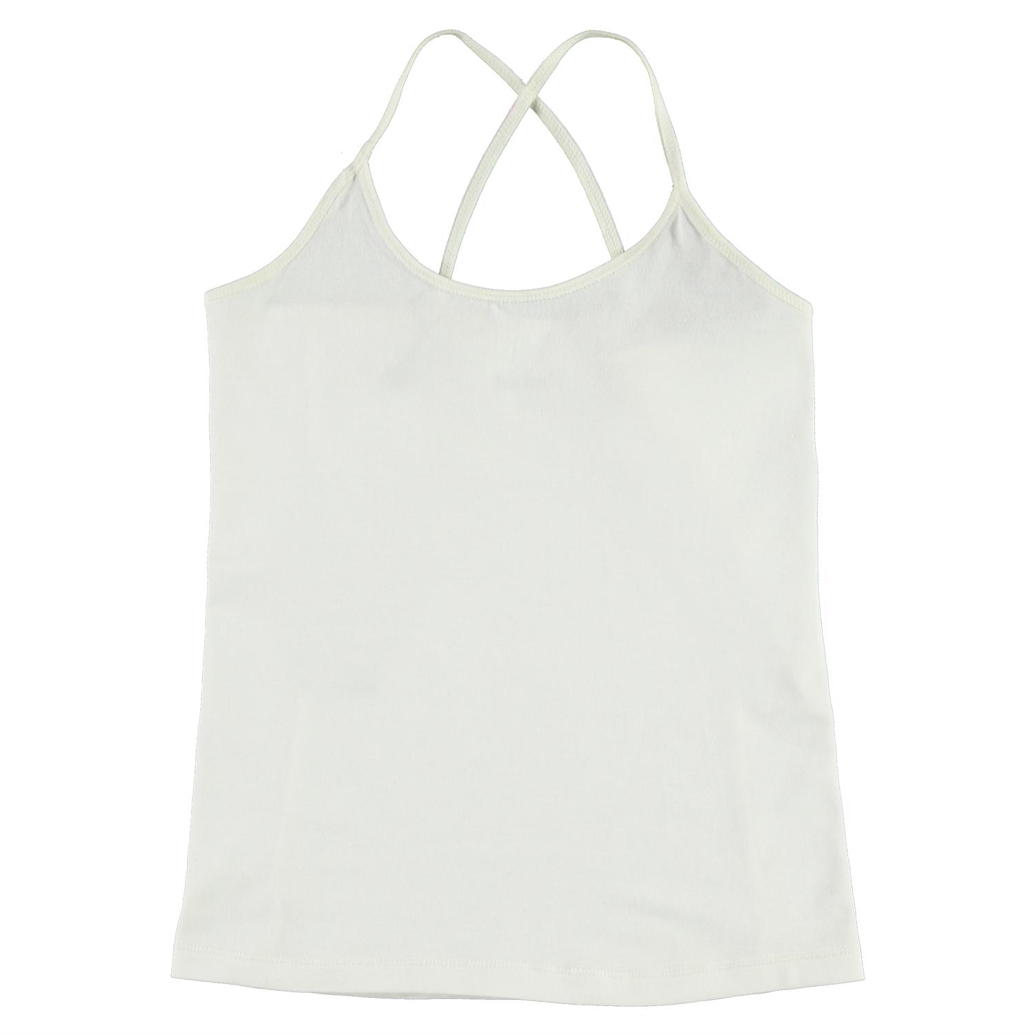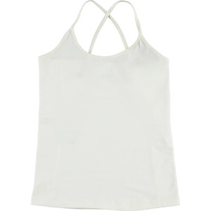 Janis är en vit bomullstopp med korsade remmar i ryggen. Underkläderna kommer i en liten påse.