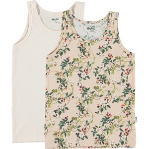 2-pack undertröjor med breda axelband. Den ena är råvit och den andra rosa med björnbärsrankor.
