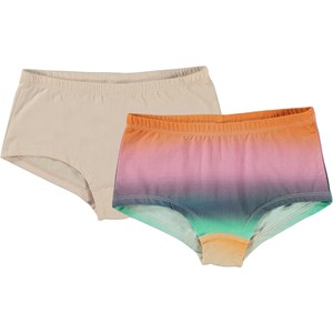 2-pack trosor med bred passform. Det ena paret är rosa medan det andra är svagt multifärgat.