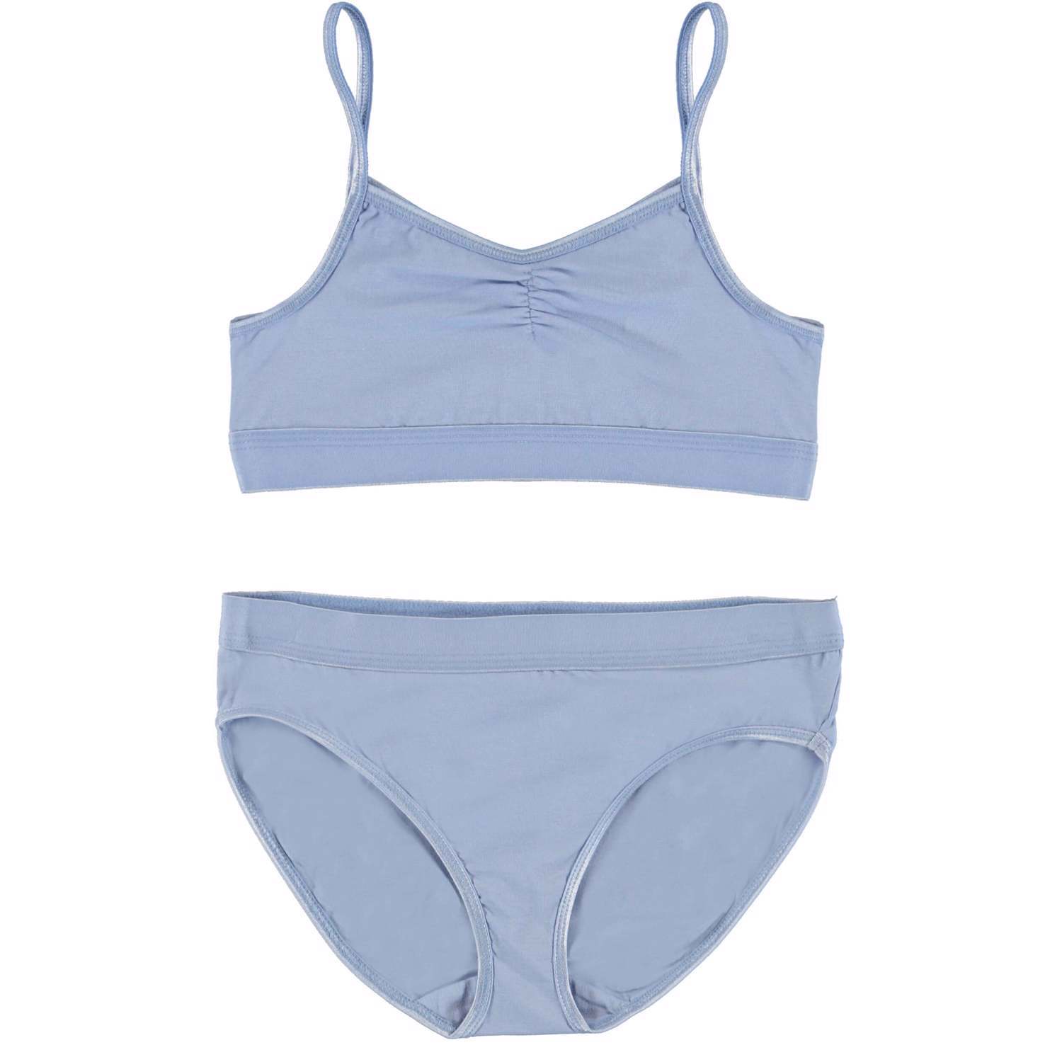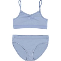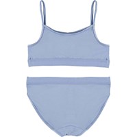 Jinny är ett set underkläder i ljusblå. Både övderdel och trosor har en bred svart elastisk kant som säkrar en bra passform.