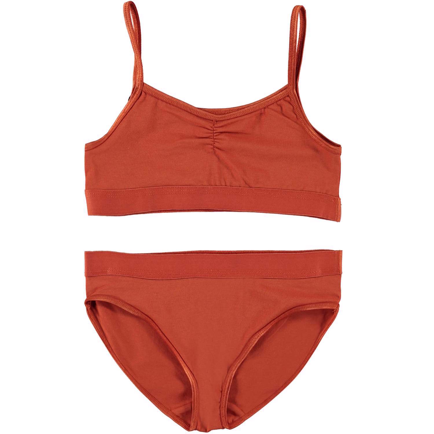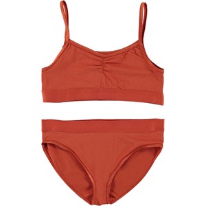 Jinny är ett set underkläder i rostfärg. Både övderdel och trosor har en bred svart elastisk kant som säkrar en bra passform.