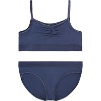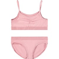 Lila underkläder i mjuk och stretchig viskos. Toppens tunna elastiska band och den rynkade sömmen framtill ger toppen en fin passform. Både toppen och trosorna har en bred elastisk resår för att säkerställa en bra passform och bekväm känsla.