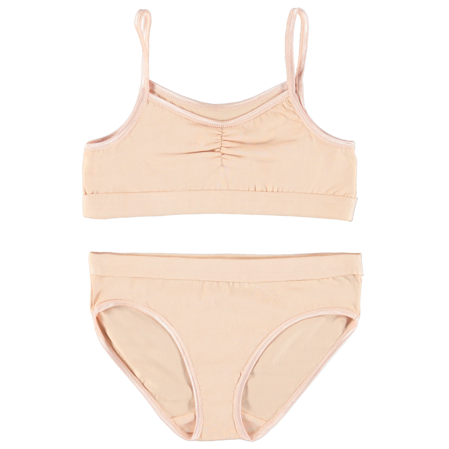 Jinny är ett set underkläder i rosa. Både överdel och underdel har en bred gummibandskant, som säkrar en bra passform.