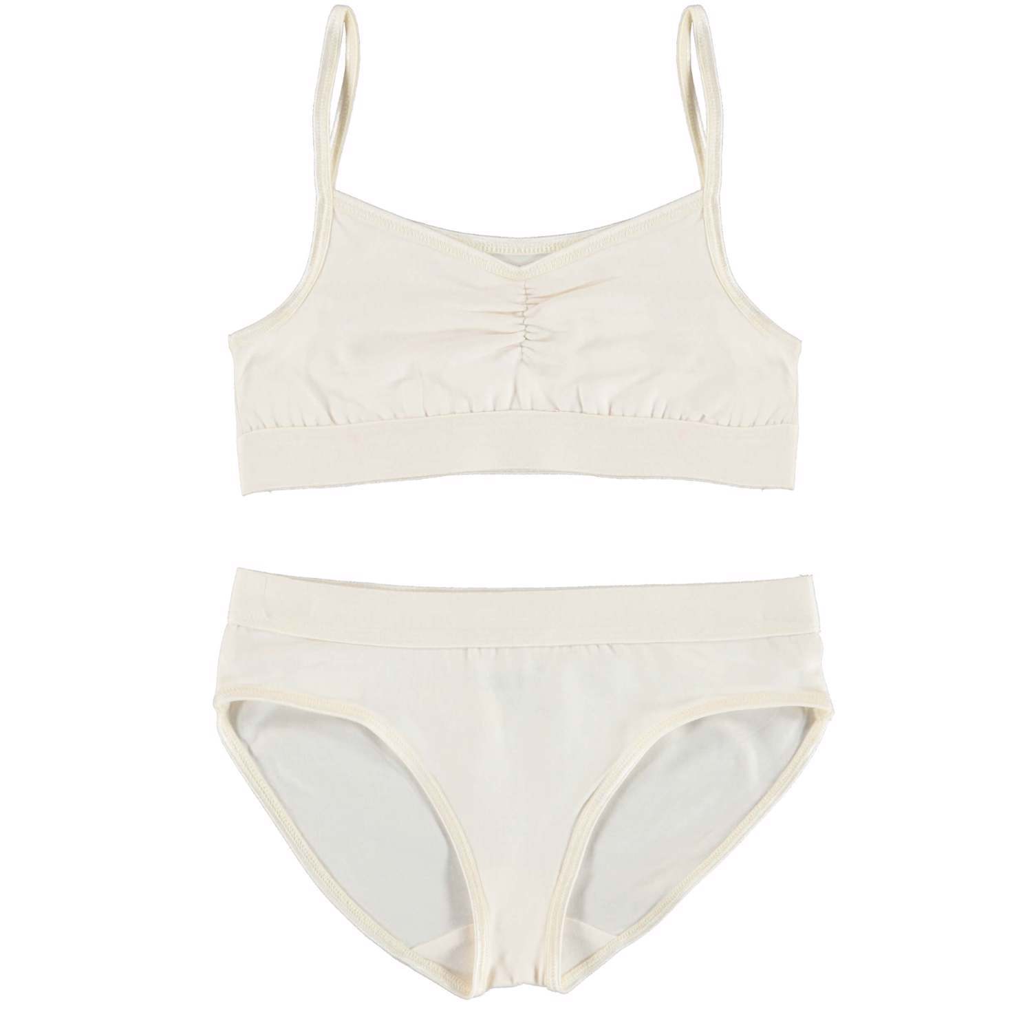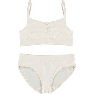 Jinny är ett set underkläder i en fin pärlemorsfärg. Både övderdel och trosor har en bred svart elastisk kant som säkrar en bra passform.