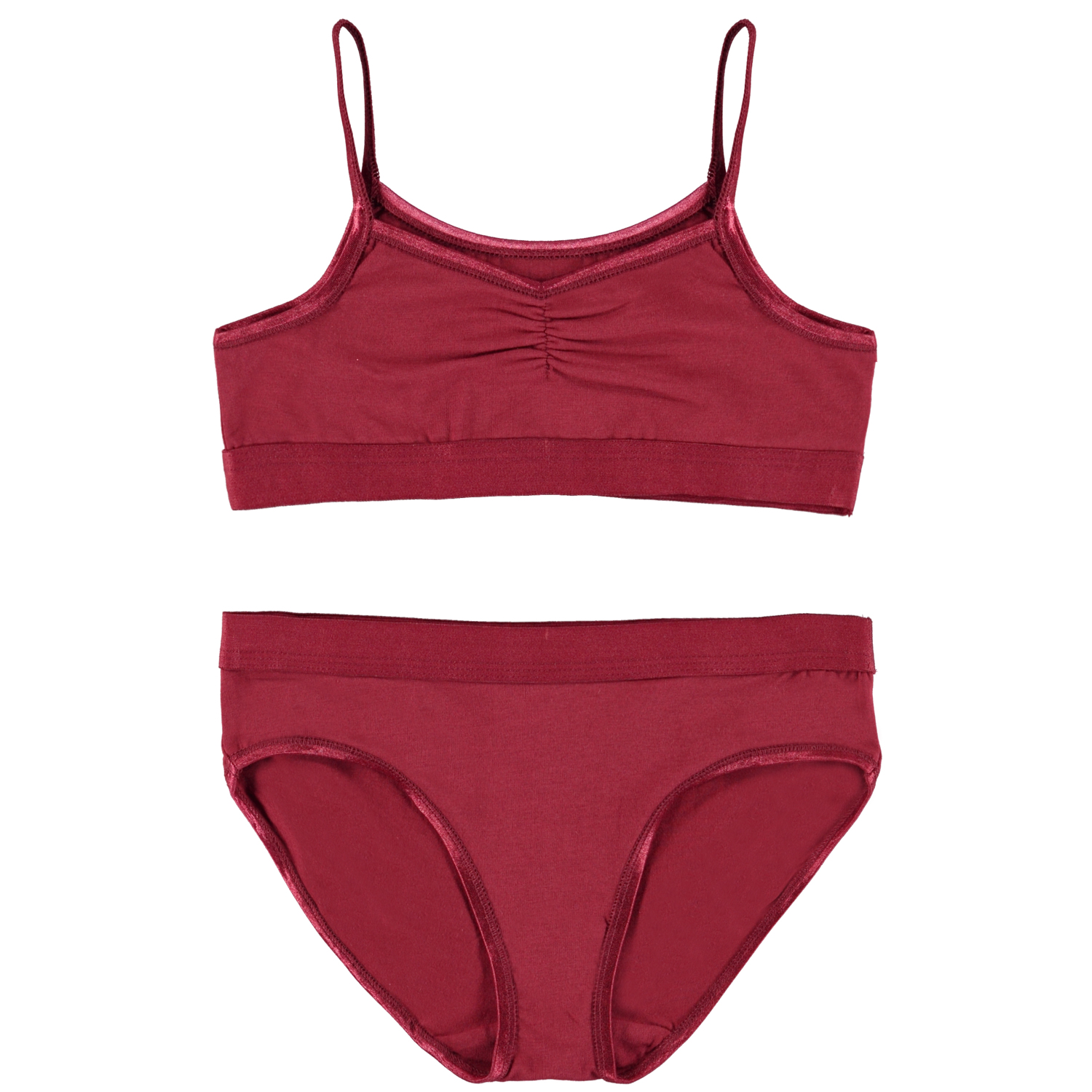 Jinny är ett set underkläder i rosa. Både överdel och underdel har en bred gummibandskant, som säkrar en bra passform.