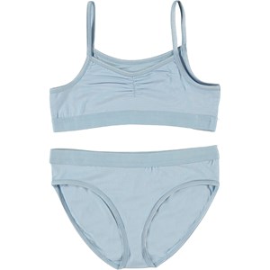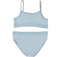 Jinny är ett set underkläder i ljusblå viskosjersey. Både över och underdel har brett gummiband som säkrar en bra passform.