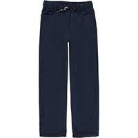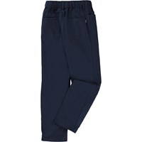 Abe är ett par mörkblå byxor i twill kvalitet med gummiband och randigt knytband i midjan, så de sitter perfekt på alla barn. Byxorna har en skön passform med regular fit och är fodrade på insidan, så de är perfekta när vädret skiftar och blir kallare.
