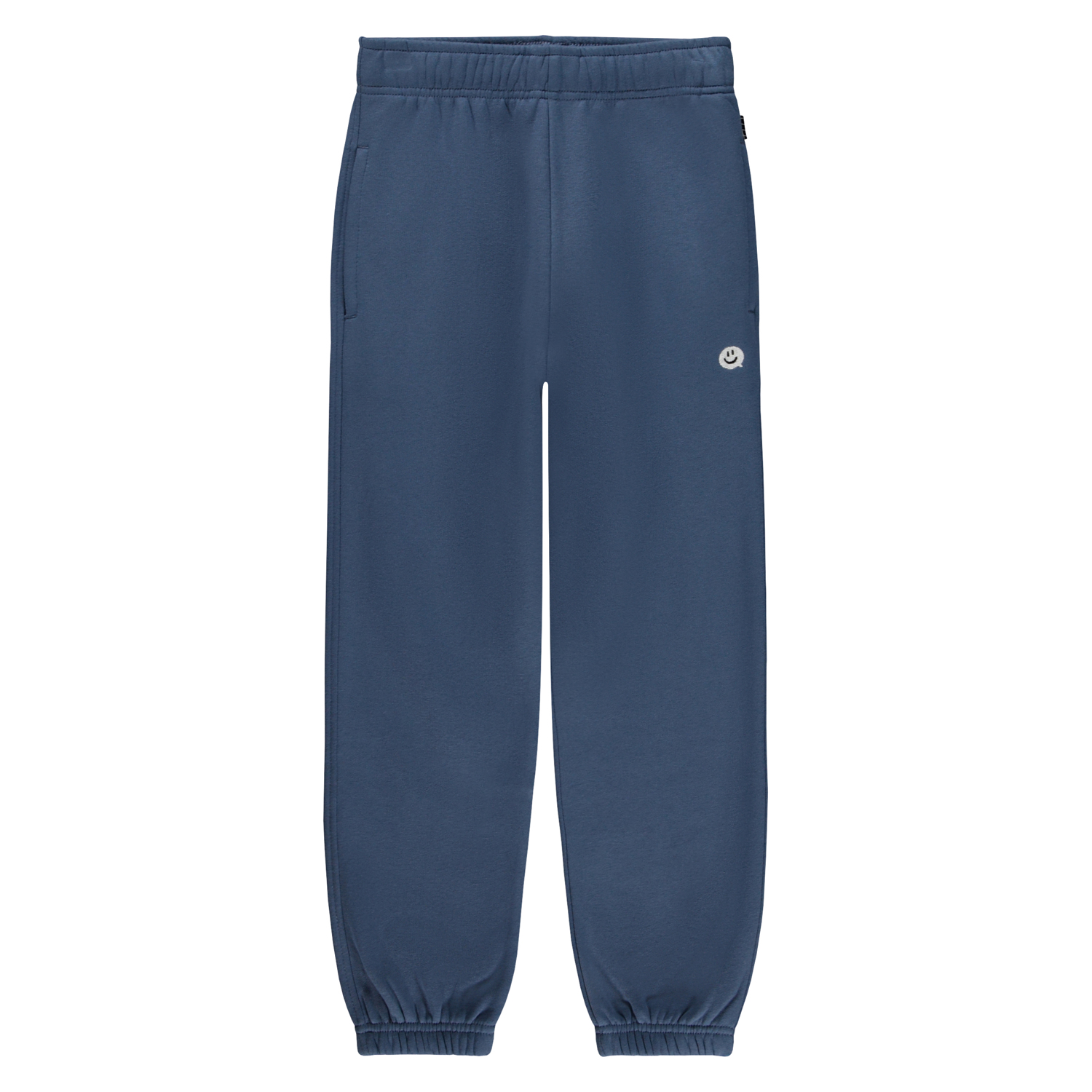 Blå sweatpants med pratbubblor. Dessa byxor är tillverkade i 100% bomull, har gummiband och invändigt knytband i midjan, gummiband vid anklarna, fickor i sidorna och en bakficka. Byxorna har en normal passform. Matcha evt. Dessa byxor med sweatshirten Mar i samma färg, för det perfekta setet.