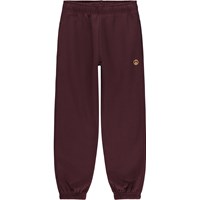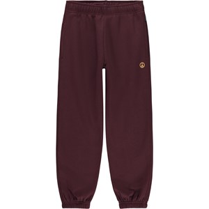 Vinröda sweatpants med gula peacetecken. Dessa byxor är tillverkade i 100% bomull, har gummiband och invändigt knytband i midjan, gummiband vid anklarna, fickor i sidorna och en bakficka. Byxorna har en normal passform. Matcha evt. Dessa byxor med sweatshirten Mar i samma färg, för det perfekta setet.