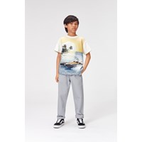 Aesy är ett par ljusgrå chinos med fickor framtill, en enkel bakficka och knytband i midjan.