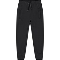 Grå byxor i ekologisk bomull med snöre och mudd i midjan, mudd vid benslut, fickor med dolda dragkedjor på sidorna och en bakficka. Byxorna har en smal passform.