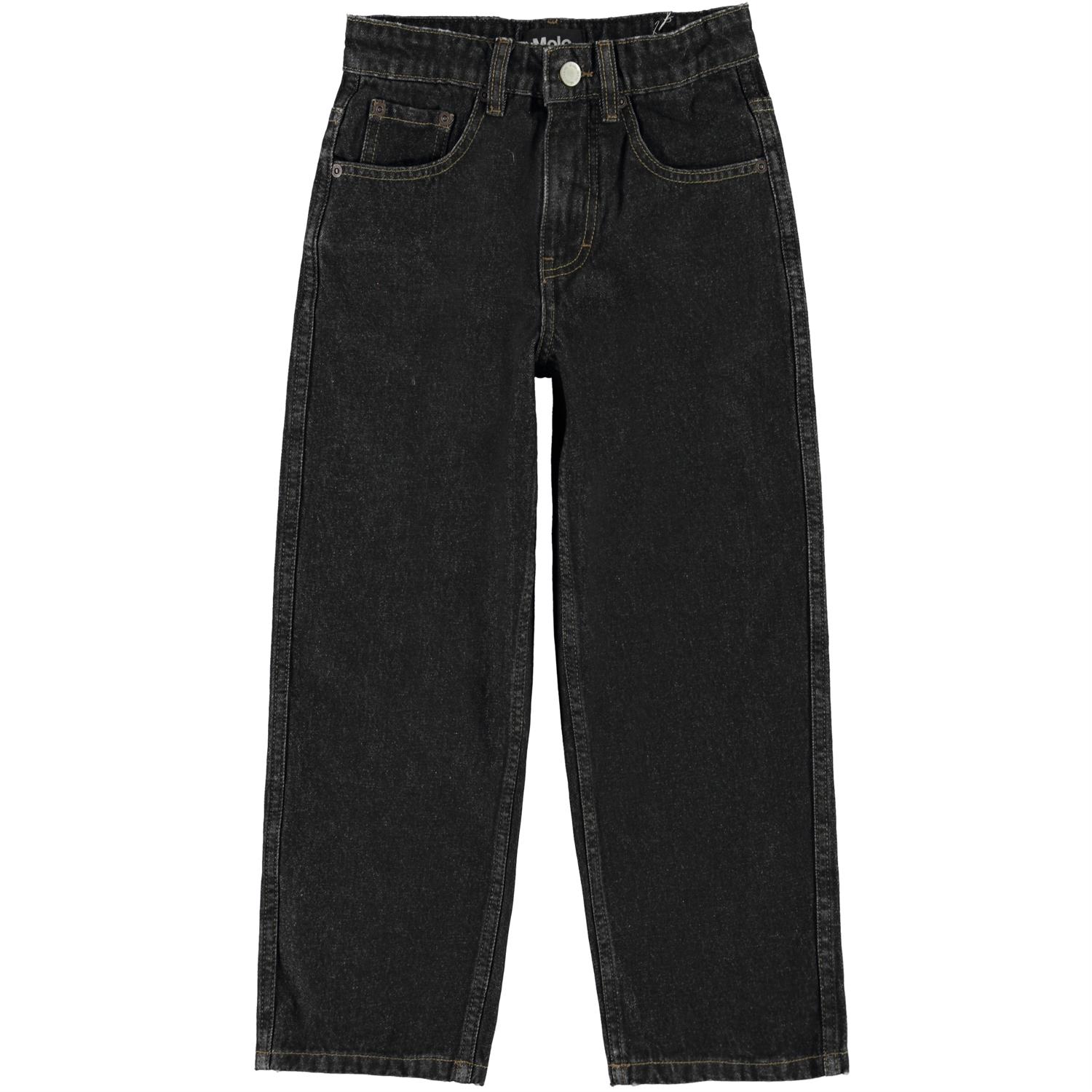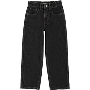 Aiden är Molos nya jeans i svart, som har en cool och extra bred passform med inspiration från skateboardmiljön. Den rymliga passformen och benens bredd gör byxorna bekväma att ha på sig. Byxans midja kan justeras med en justerbar resår så att de passar perfekt för alla barn. Aiden är gjorda av 100% bomull. Observera att storlekar upp till och med 134 har en tryckknapp och inte en vanlig denim-knapp.