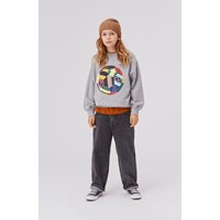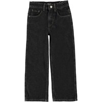Aiden är Molo´s nya jeans i svart som har en extra bred passform med inspiration hämtad från skatemiljön. Den rymliga passformen och den breda vidden i benen gör byxorna enkla att röra sig i. Byxorna kan justeras i midjan med invändigt gummiband, så de passar perfekt till alla barn. Aiden är tillverkad i 100% bomull, vilket gör dem extra slitstarka. Notera att storlekarna upp till 134 har tryckknapp och inte vanlig jeansknapp.