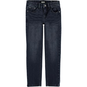 Aksel är ett par slim fit jeans i mörkblå. Byxorna har lite stretch så de är sköna att ha på och röra sig i. Notera: storlekarna upp till 134 har tryckknapp och inte vanlig jeansknapp.