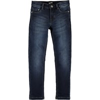Aksel är ett par slim fit denim jeans i indigo blå. Var uppmärksam på att storlekarna upp till och med 134 har tryckknapp och inte vanlig jeansknapp.