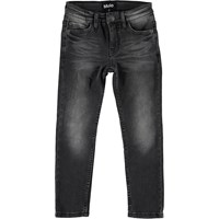 Aksel är grå slim fit denim jeans med rå tvättade benslut. Var uppmärksam på att storlekarna upp till och med 134 har tryckknapp och inte vanlig jeansknapp.