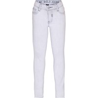 Slimfit jeans i en tvättad look med reglerbar midja med knappknäppning, fickor fram samt bakfickor med fina dekorativa stickningar, hällor till bälte och ett läder patch i midjan.