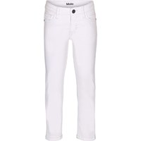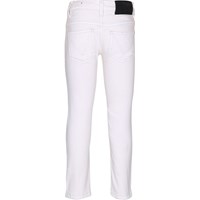 Vita, klassiska slim fit denim jeans. Byxorna har reglerbar midja med bältehällor och ett coolt läder patch samt fickor både fram och bak. Observera, att storlekarna till och med 128 har tryckknapp, varav storlekarna från 134 och upp efter har vanlig jeansknapp.