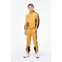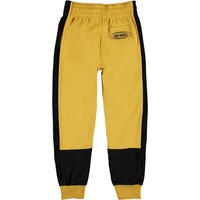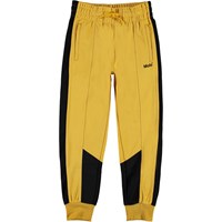 Albie är en senapsgul track byxa med svarta detaljer på nedtill och på sidorna av benen. Byxorna har fickor med dragkedja samt en bred resår i midjan med dragsko.